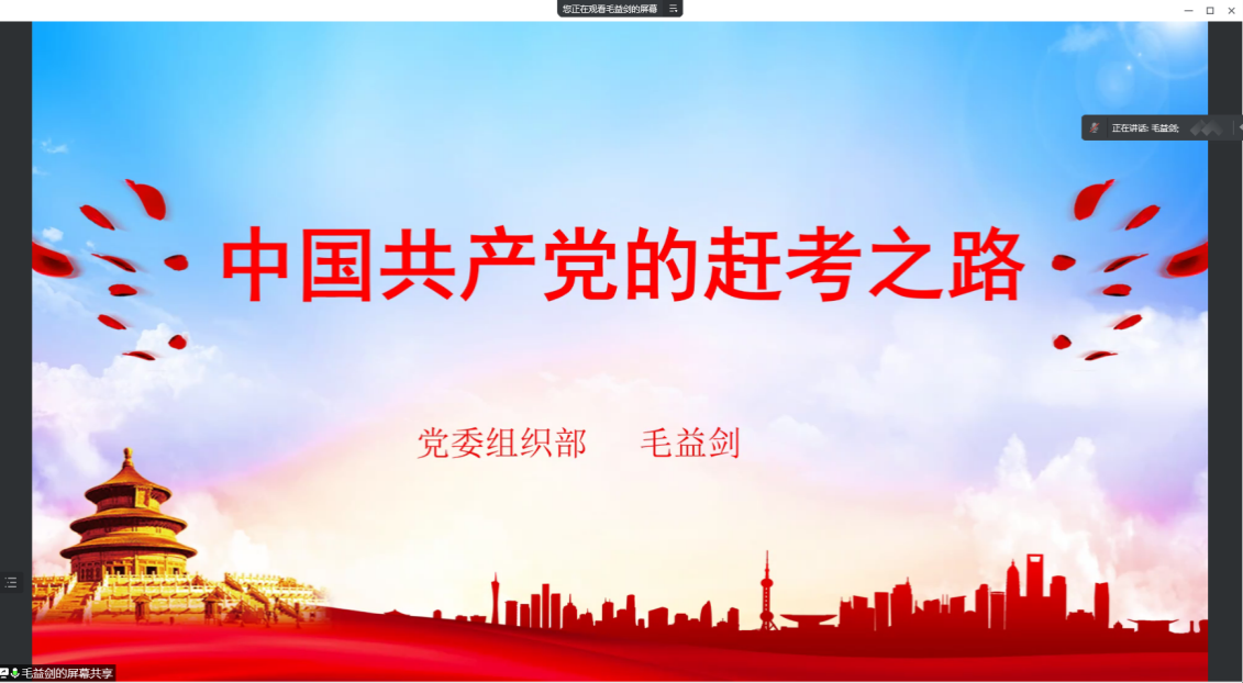 此次培训,毛益剑围绕赶考之路“是什么”“为什么”“怎么做”三方面展开了详细讲解,从党的百年“赶考”概况到党的百年奋斗重大成就和历史经验,向培训班的学员一一作了介绍。在讲解过程中,毛益剑引导培训班的学员不断深入思考“赶考”新征程的重要任务,希望学员们在祖国最需要的地方建功立业,勇于担当民族复兴大任,创造属于新时代的新业绩,不负人民期望,不辱时代使命。