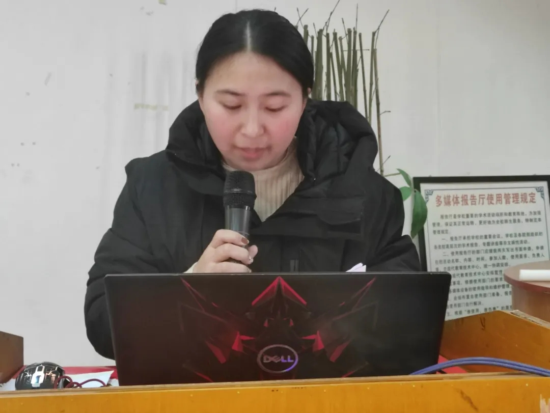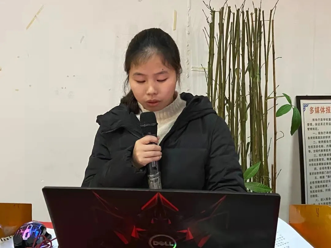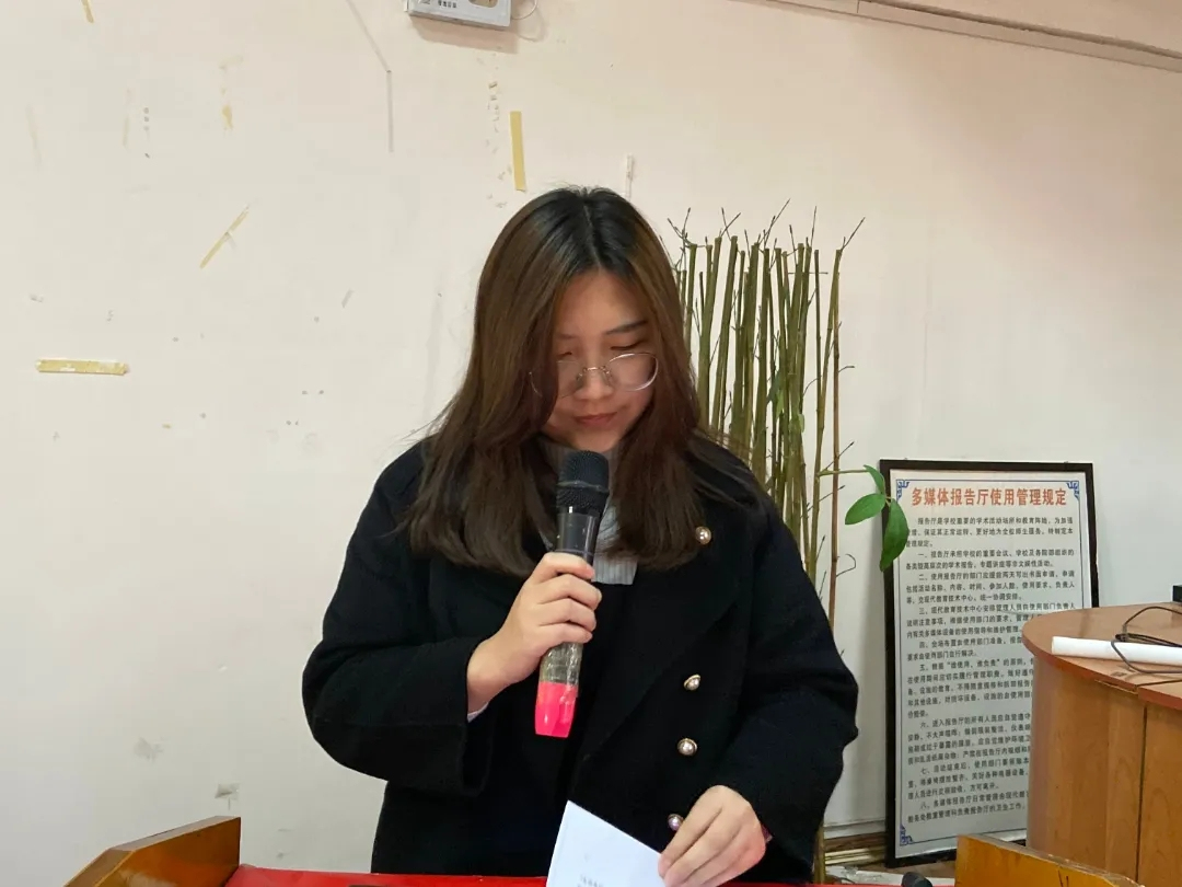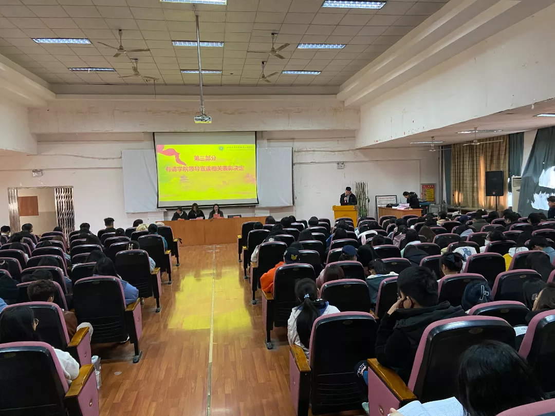 冯秀秀老师宣读《关于表彰2020-2021学年国家奖学金、国家励志奖学金获得者的决定》,她希望全院学生以榜样为引领,勤奋学习、积极进取,争做德智体美劳全面发展的社会主义建设者和接班人。