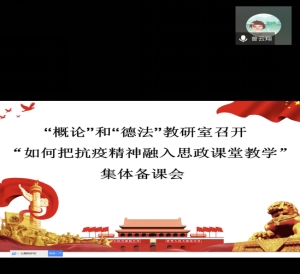疫情在全国多数地区出现反弹,给党、国家和人民带来各方面的困难和挑战。为了战胜疫情,各地党员干部、各行各业人员坚守岗位,都在同病魔厮打,同病毒赛跑。作为立德树人关键课程的教师,在疫情防控关键阶段,有责任把抗疫精神和抗疫中的典型事例向学生宣传,贡献自己的力量,如何把抗疫精神入课堂,入学生头脑。2022年4月13日下午2:00,“概论”和“德法”教研室开展了线上集体备课会,会议就如何将抗疫精神融入思政课堂教学展开,教研室全体教师参加。