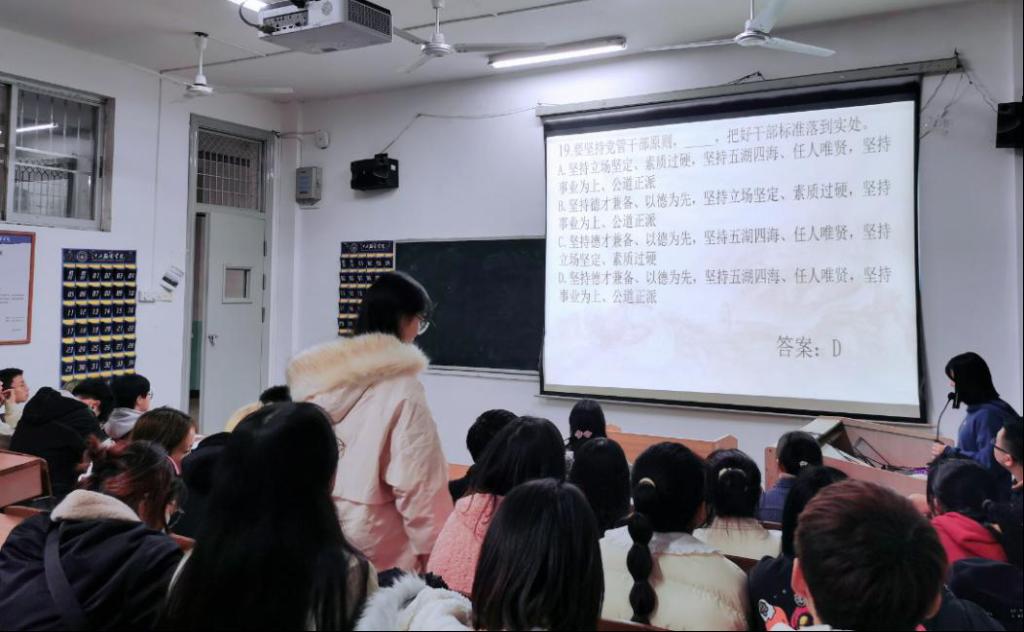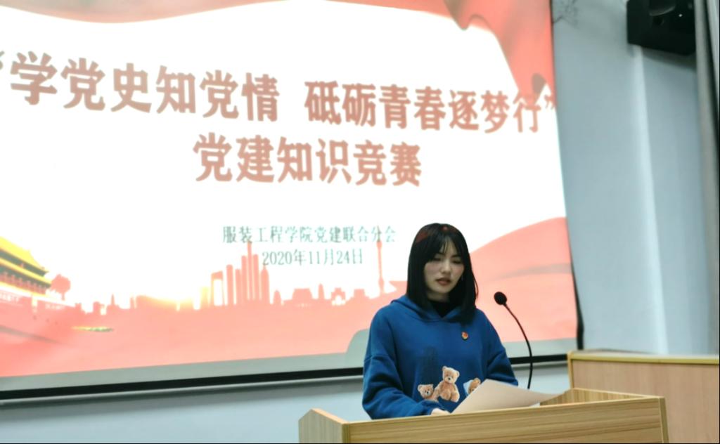 (服装工程学院讯:文/肖传胜 图/李晓丽/陈钰梅)为深入学习贯彻习近平新时代中国特色社会主义思想和党的十九大、十九届三中、四中、五中全会精神,不断巩固“不忘初心,牢记使命”主题教育成果,紧跟校党建文化建设步伐,同时提高我院全体党建成员的思想理论水平,培育“学党情知党情”的良好学习氛围。11月24日晚,服装工程学院党建联合分会在主教楼127教室开展了“学党史知党情,砥砺青春逐梦行”党建知识竞赛,各部门共组建了六支队伍参加本次竞赛。学院党总支书记蓝岚同志出席本次活动。
