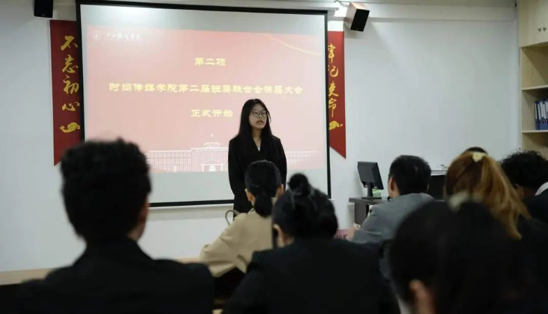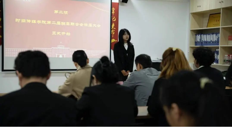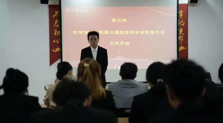 (时尚传媒学院讯 高婧美撰稿)为牢记党和国家对青年一代的厚望,为加强时尚传媒学院学生组织协调能力,增强集体凝聚力和向心力,顺利完成本次工作的交接。时尚传媒学院于10月23日中午12时10分在艺术楼430教室举行第二届时尚传媒学院班委联合会换届大会。出席本次换届大会的有万象城平台党总支副书记黄朝辉老师、康艳红老师以及班委联合会骨干、各部门骨干。会议由白一兰主持。