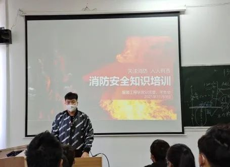 服装工程学院分团委学生会于11月9日15时在主教楼126教室开展“江”心防火患,“临”危不惧乱全国消防日主题教育活动。本次活动由服装工程学院学生会执行主席陈茂鑫主讲。为响应新冠疫情部署要求,与会人员均隔开入座,佩戴口罩,积极配合防疫工作开展。