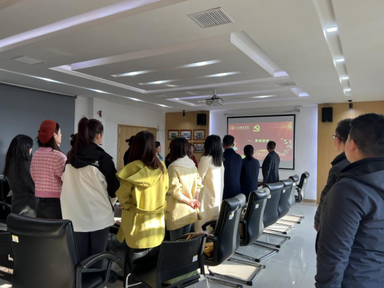 会议第一项,奏唱国歌,全体党员起立,共唱中华人民共和国国歌,现场庄严。