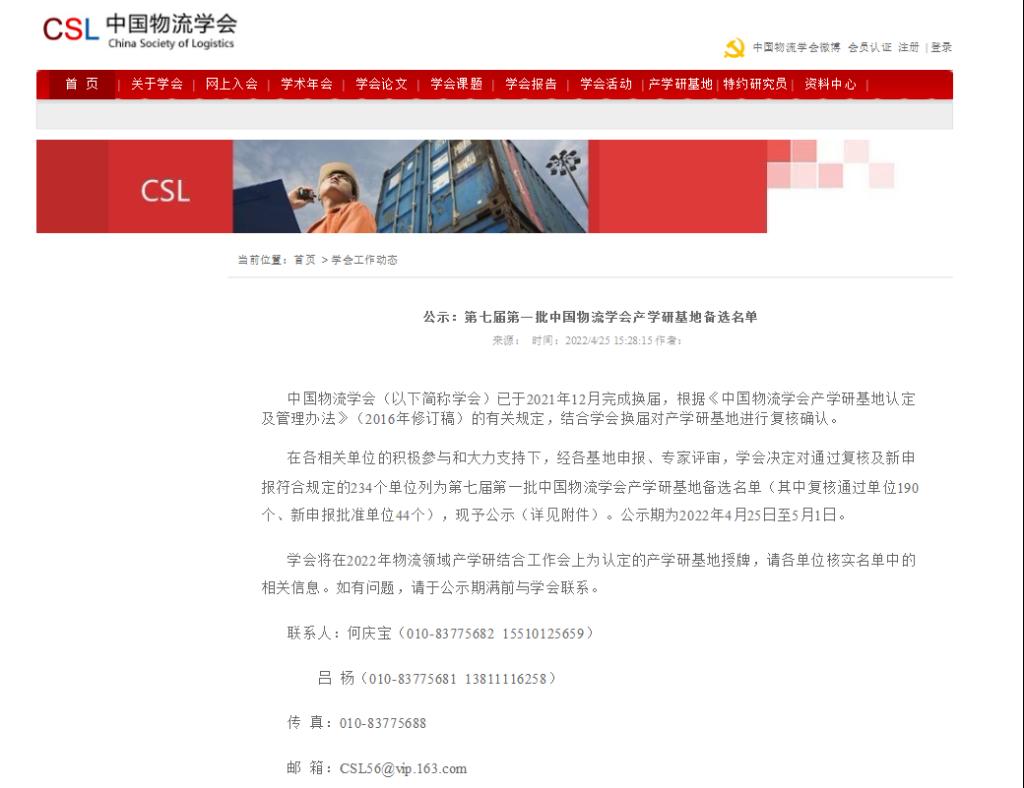 中国物流学会是全国性物流学术研究社团组织,涵盖物流领域政产学研各界,具有较强的资源整合能力和广泛的社会影响力。中国物流学会在物流学术理论研究、政策咨询建议、案例总结推广、人才教育培训、专家团队建设、新闻出版和对外交流等方面承担着重要职能,是全国物流管理研究、物流产业发展的权威组织。“中国物流学会产学研基地”是为深化物流学术理论研究,促进科研成果转化,发挥产学研结合优势,加强物流理论体系和学科体系建设设立的工作平台。