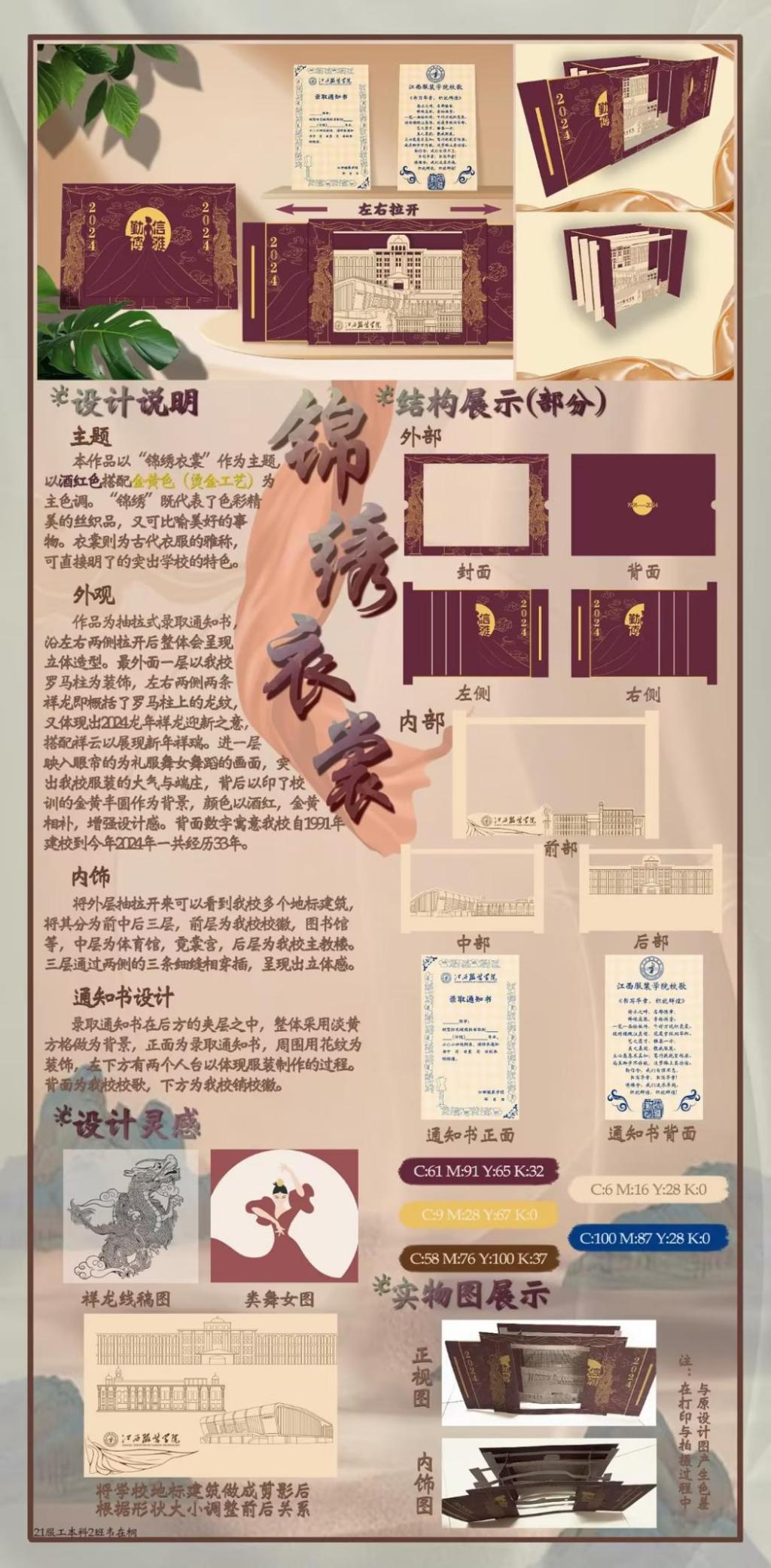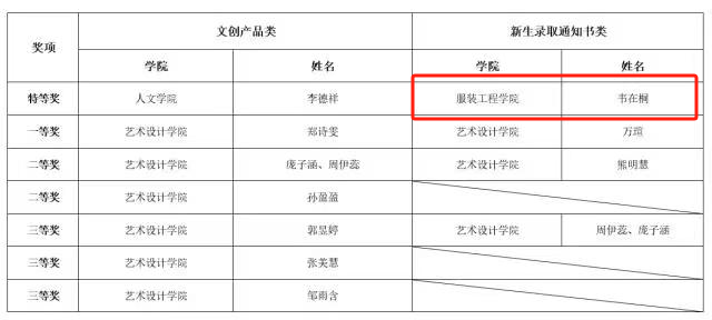 服装工程学院21服工本科2班的韦在桐同学荣获新生录取通知书类特等奖!