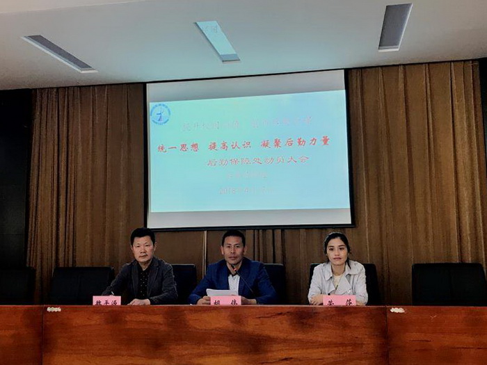 服装报讯(后勤处 蔡锦刚) 4月17日,校后勤保障处在行政楼一楼报告厅召开了“迎评促建动员大会”。会议由后勤处处长胡伟主持,魏平源、荣莎副处长及全体后勤人员参加了会议。