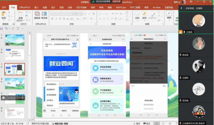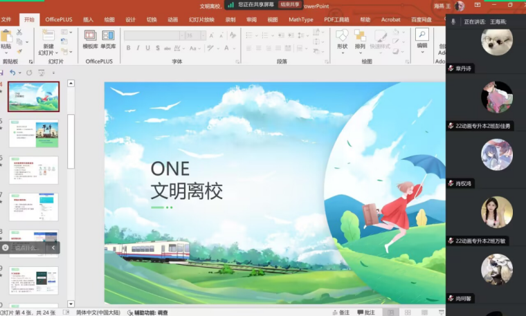 在毕业生返校参加毕业典礼之际,时尚传媒学院全体2024届毕业班班级在班主任的主持下,通过腾讯会议召开了就业育人公开课之《文明离校,启程赴山海,校友会见!》主题班会课。课上,班主任老师主要从文明离校、奔赴山海、校友会见三个模块讲解离校手续、给予美好祝福和介绍校友会的意义,为大家搭建相互联系、重叙旧情、沟通交流、学习共享的平台。