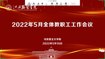 为进一步贯彻落实好学校和上级关于疫情防控工作要求,推进学院各项工作有序进行,2022年5月10日下午,马克思主义学院通过线上线下形式召开2022年5月全体教职工大会,学院党政领导班子成员、全体教师参加会议,会议由院长周丽琴主持。