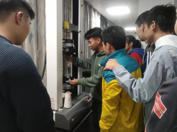 学习完软件如何操作过后,随后学习如何使用织物拉伸断裂仪器进行实验。在社团负责人示范下,同学们经过实际操作,成功的完成了织物拉伸断裂实验。