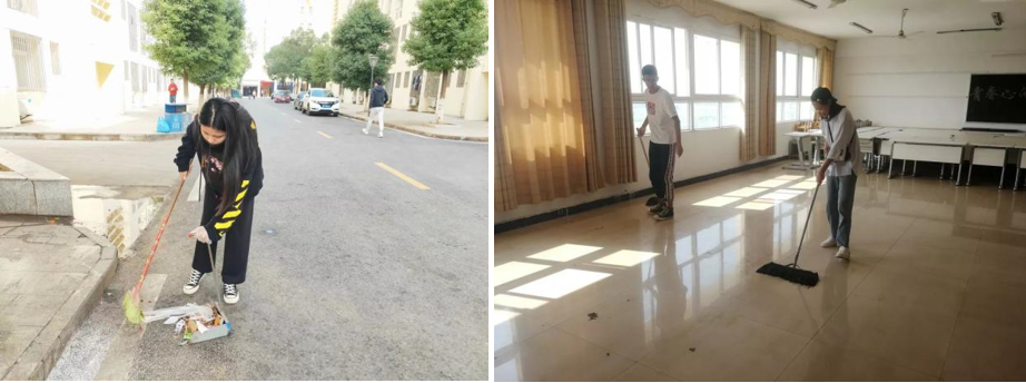随后,各团学干部志愿者们对画室、班级教室和艺术楼前广场等地进行垃圾的清扫和分类,同时积极地向同学宣传垃圾分类的相关知识引领更多的同学参与中。各志愿者们明确自身的任务,积极投入此次活动中。通过辛勤劳动,使学院环境焕然一新。