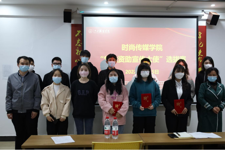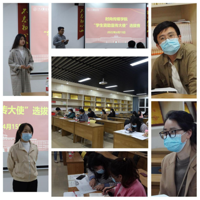 为深入贯彻落实习近平总书记在党史学习教育动员大会和全国脱贫攻坚总结表彰大会上的重要讲话精神,巩固拓展脱贫攻坚成果,持续宣传党和国家的学生资助政策。2022年4月15日晚,时尚传媒学院“学生资助宣传大使”选拔赛在艺术楼430党员活动室举办。出席的评委老师有:校资助中心主任余晓萍老师、时尚传媒学院党总支副书记黄朝辉老师、院学工办副主任成为家老师、院学生支部书记康艳红老师、辅导员魏峙东老师。