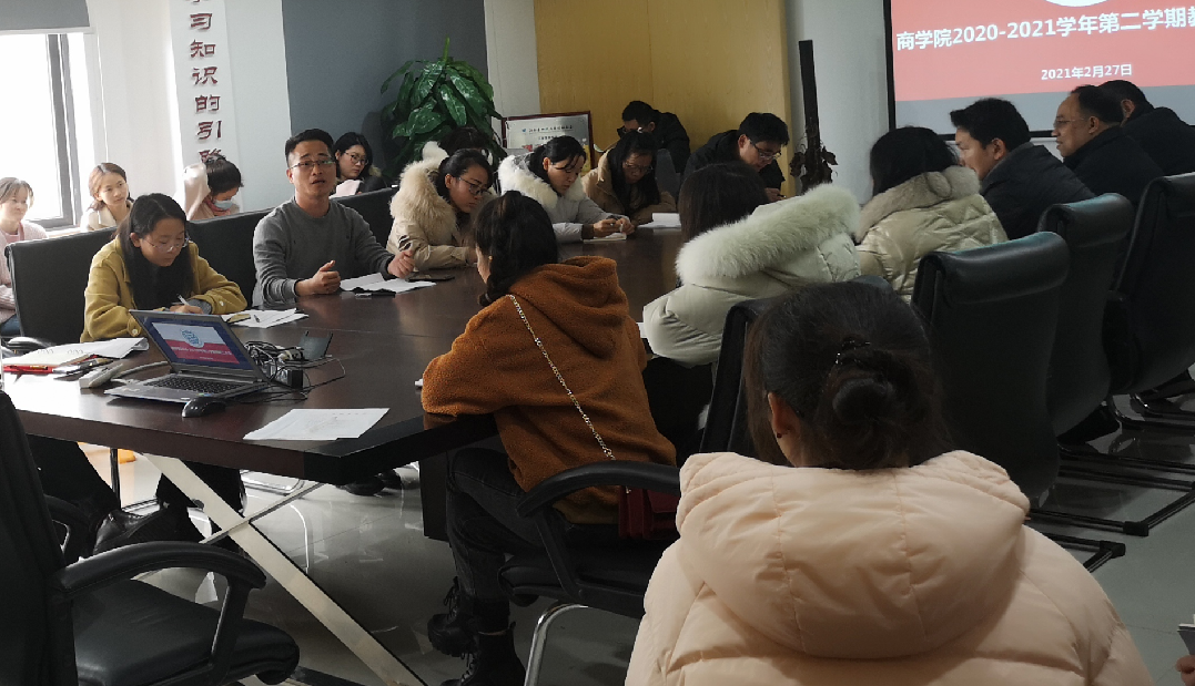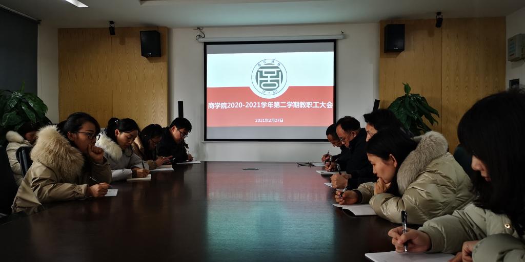 【商学院讯】为确保2020-2021学年第二学期我院教学工作顺利开展,将各项教学工作落到实处,提高教学质量。2021年2月27日下午,商学院在清源一栋三楼学院会议室组织召开了新学期教职工大会。商学院院长谭兆国、副院长罗芳、副院长刘春生、院办主任蔡芬、各教研室主任以及分院全体专任教师参加会议,会议由院长谭兆国主持。