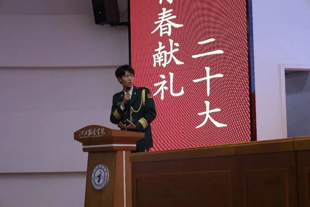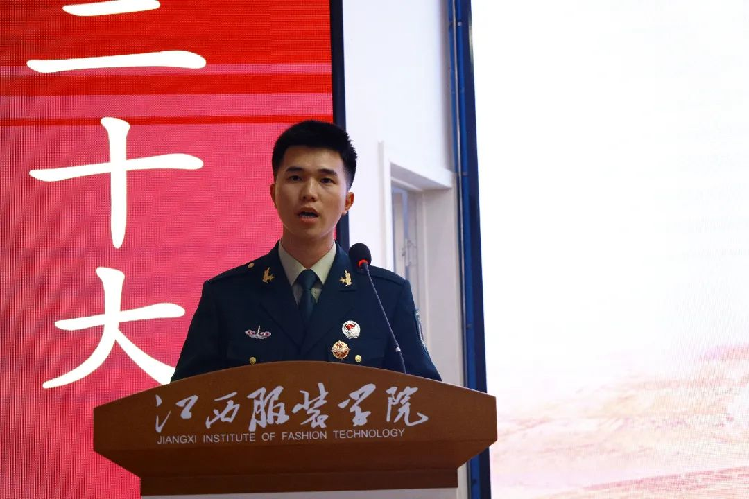 传承红色基因,汇聚强军力量。时尚传媒学院优秀退伍学生代表田忠堂发言,他围绕自身经历,通过讲述中国人民军队的发展历程、情系国防和献身国防的先进典范,抒发新时代青年对实现中国梦、强军梦的理解和感悟。