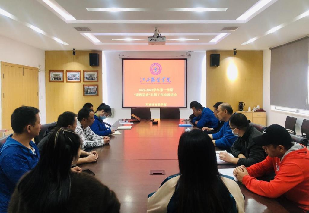 【军体部讯】为深入学习党的二十大精神,贯彻落实习近平总书记关于教育、体育的重要论述和教育部印发《高等学校课程思政建设指导纲要》文件精神,推动大学体育课程思政教学改革创新,构建大学体育课程思政育人新格局。11月10日,军事体育教学部召开大学体育“课程思政”名师工作室建设推进会,名师工作室负责人及团队成员参加此次会议,会议由体育教研室副主任王福滨主持。