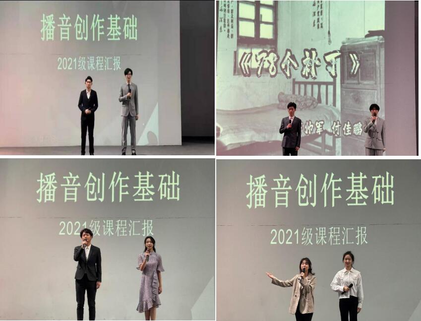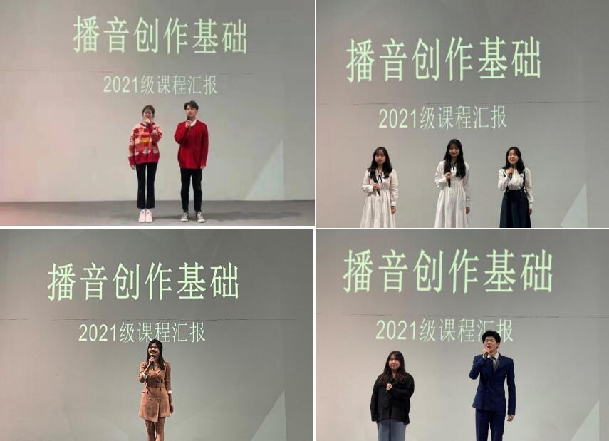 (时尚传媒学院 讯)风雨苍黄百年路,高歌奋进新征程。回望过往奋斗路,眺望远方前进路,聚焦中国共产党成立100周年,时尚传媒学院播音与主持艺术专业结合自身专业特色,以推进党史学习教育走深走实为目的,培养学生的专业实践能力,于2022年1月4日上午9 时,在图书馆表演厅举行了《播音创作基础》课程成果汇报展演,由冉苗老师、谷雨老师、熊妍老师担任此次课程成果汇报展演的指导教师。