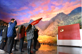 活动伊始,一进陈列馆内,映入眼帘的是一把大型的金色军号,一尊镌刻着入党誓词的石碑矗立在一旁,学生党员们肃穆而立,握紧右拳进行庄严宣誓。在他们铿锵有力的入团誓词中,展现了属于他们共青团员的精神面貌,唤起每一位团员的团员意识。宣誓结束后,陈洋安老师做宣誓总结。他在宣誓总结中提到三点希望,一是希望在场的所有学生干部能够“不忘初心,牢记使命”,通过自己的努力在未来积极投身到建设中国特色社会主义道路中去;二是希望通过此次的学习活动大家都能够有所收获,有所反思,反思出自己的不足,加以改正;三是希望大家能够牢记自己的角色,以更高的标准要求自己。
