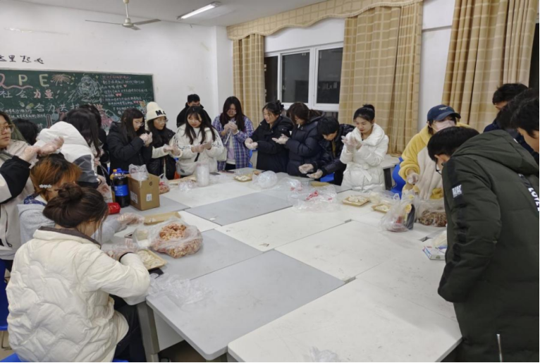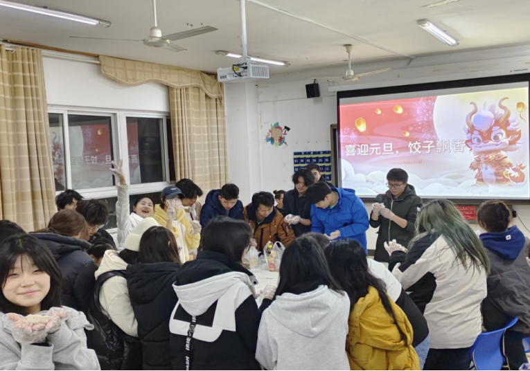 23动画本科5班开展“喜迎元旦,饺子飘香”活动。情暖冬至,饺香飘溢。让同学们感受到冬季的温暖,营造和谐温馨的班级集体氛围。大家戴手套、拿饺皮、放馅料,活动现场欢声笑语,热闹非凡,大家忙得不亦乐乎,有的给饺子做造型,有的捏花边,有大有小、有圆有扁、月牙饺、元宝饺、波纹饺、小笼包等造型相继出现。大家包出来的饺子千姿百态,形态各异。但在同学们的眼里,自己包的饺子是最漂亮、最好吃的。辅导员关心同学们的这次活动,也加入了此次活动中。这次活动不仅增进了辅导员与同学们之间的感情,也让同学们感受到了团结和睦的集体氛围和家的温暖!这次活动有着节日的温暖,也感受到了我国传统文化的浓厚气息。
