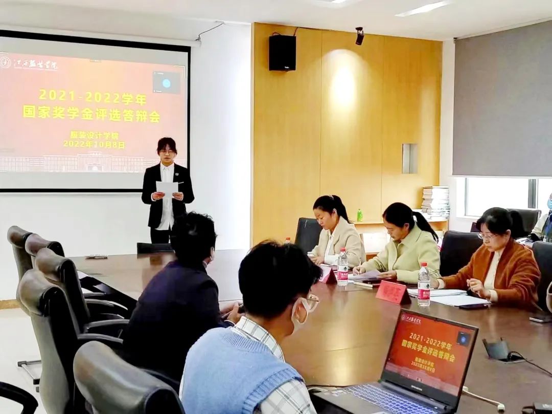 为激励广大学生勤奋进取、全面发展,积极发挥优秀学生的榜样引领作用,进一步规范学院国家奖学金评审工作,10月8日,服装设计学院于清源2栋401会议室举行2021-2022学年国家奖学金评选答辩会。服装设计学院党总支书记蓝岚、副书记周洪英、学工办主任兼分团委书记张敬玲、资助工作专干陈姝以及各年级辅导员老师出席此次答辩会并担任评委。