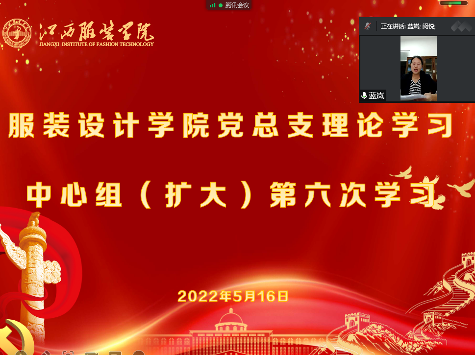 5月16日晚,服装设计学院党总支于腾讯会议平台召开理论学习中心组(扩大)第六次学习会。党总支书记蓝岚主持会议,党总支理论中心组成员及学院领导班子出席会议。