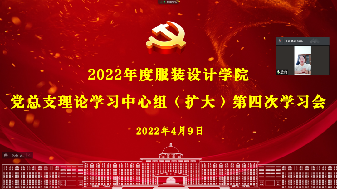 4月9日,服装设计学院党总支于腾讯会议平台召开理论学习中心组(扩大)第四次学习会。党总支书记蓝岚主持会议,党总支理论中心组成员及学院领导班子出席会议。