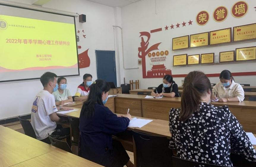 服装工程学院讯 为筑牢疫情防控期间大学生心理健康防线,深入了解疫情防控期间学生在学习、生活中遇到的问题,不断改善大学生学习生活环境和提高管理服务水平,5月10日下午14:30时,服装工程学院在清河11栋104活动室组织召开了2022年春季学期期中心理工作研判会,学院党总支书记彭波及全体辅导员参加了本次会议,会议由学工办副主任洪婷主持。