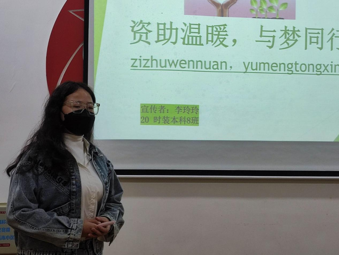 首先,副书记周洪英,对此次“资助大使”评选要求进行解说。她指出,学生资助作为一项重要的保民生、暖民心工程,在巩固脱贫攻坚成果、助力乡村振兴中发挥着重要作用。希望大家选聘成功后,积极地做好国家资助政策的宣传大使、做好学校育人成效的展示大使、做好自身成长的形象大使。