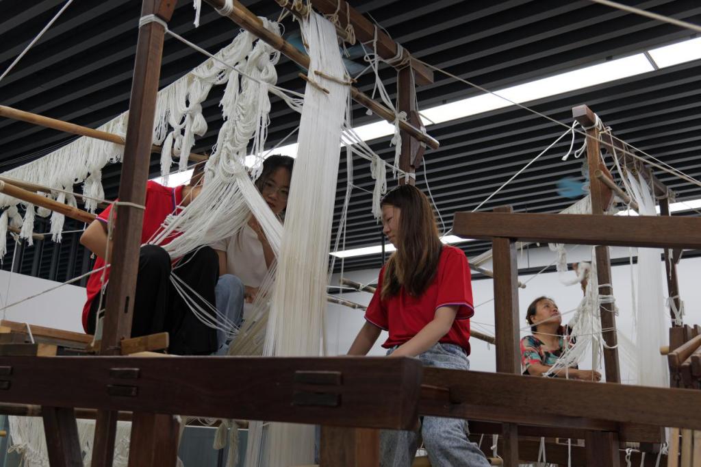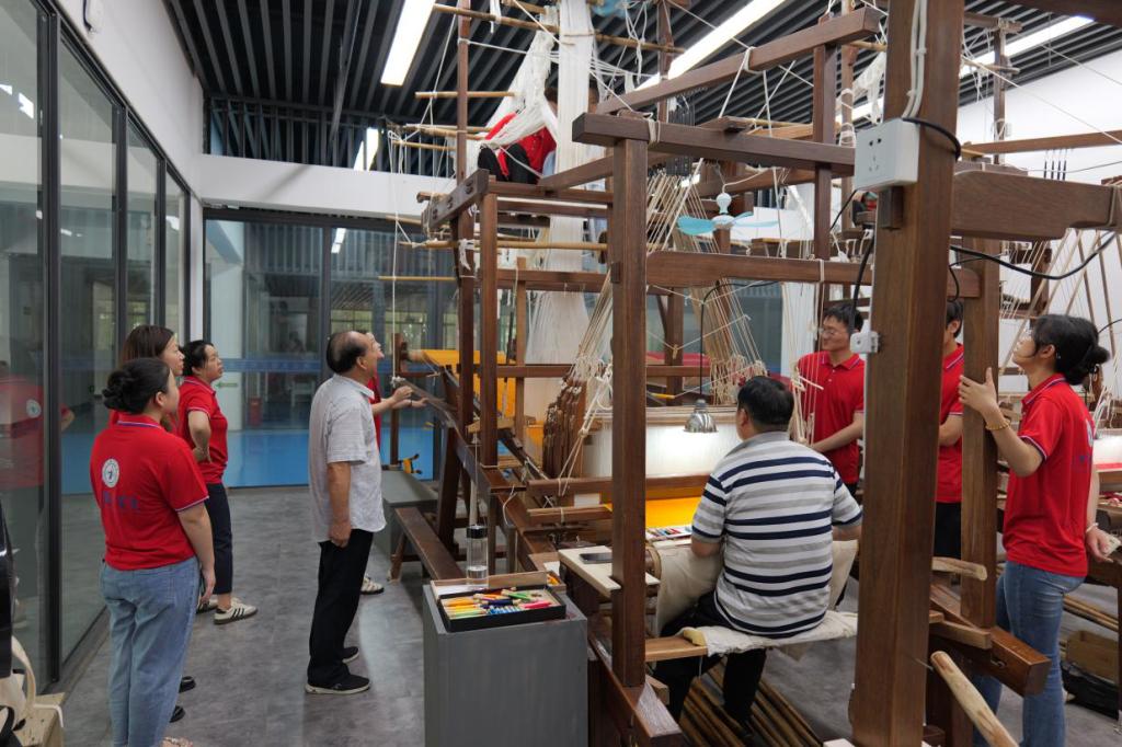 我校古丝绸织绣技艺研究院院长、中国织锦工艺大师、古丝绸技艺资深专家胡德银为服装工程学院师生详细介绍了锦缎的织造方式和织机的使用方法,大家认真学习了关于古代丝绸技艺与丝绸织造的相关知识,围绕“学习了解织锦彩缎的发展历史;推进织锦的改良创新运用;探寻提高锦缎织造质量的方式方法”等方面,与胡德银大师及在场研究员进行了交流。师生们表示,要把古丝绸织造和改良运用知识融入到学院的创新创业项目中,并为学院后续开展创新创业工作提供参考和借鉴。