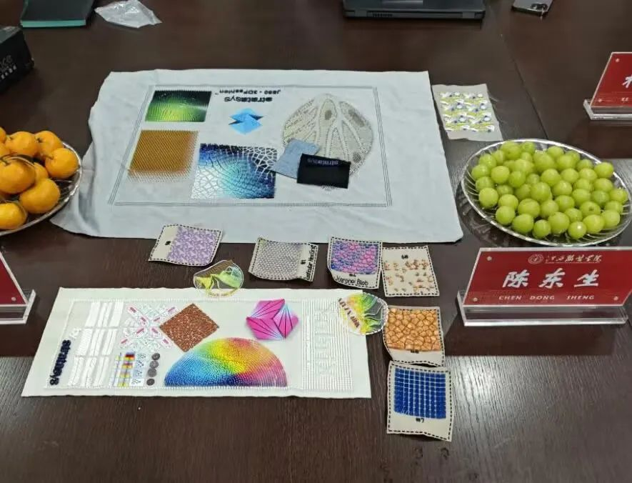会议开始前,Stratasys 3D打印有限公司(上海)一行向我院领导展示了3D打印的织物成品。会议上公司代表庄浩首先介绍了公司织物打印3D fashion应用的丰硕成果,并以视频的形式展示了国外织物3D打印的应用发展过程,以及2013年至2023年间公司与多国设计师合作的成衣。