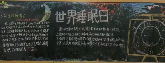 为进一步加强校园文化建设,丰富师生课余生活,在第22个世界睡眠日到来之际,时尚传媒学院组开展以“良好睡眠 健康同行”为主题的教室黑板报设计活动。