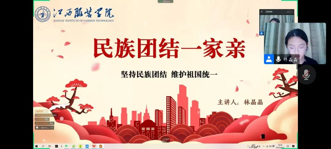 9月24日晚19时,服装设计学院采取线上腾讯会议形式开展了以“民族团结一家亲”的本科新生入学教育,旨在教育引导学生树立民族团结精神理念,加强学生民族团结观念,铸牢中华民族共同体,营造社会主义民族大家庭的和谐氛围。辅导员林晶晶老师担任主讲。