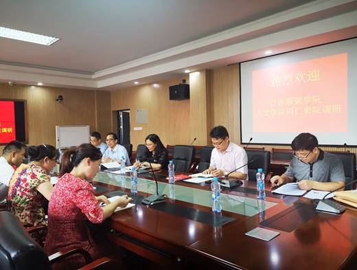 为学习了解商务英语本科专业建设经验,做好我校商务英语专业申报与建设工作,6月9日上午,人文学院马国照院长携付凌云副院长、隋丹婷副院长、外语教研室吴丽娜主任一行赴江西财经大学外国语学院调研学习。江西财经大学外国语学院张曦凤院长、张善军副院长、涂年根副院长、商务英语系肖锐主任、吕述明教授对我校人文学院一行表示了热烈欢迎与热情接待。