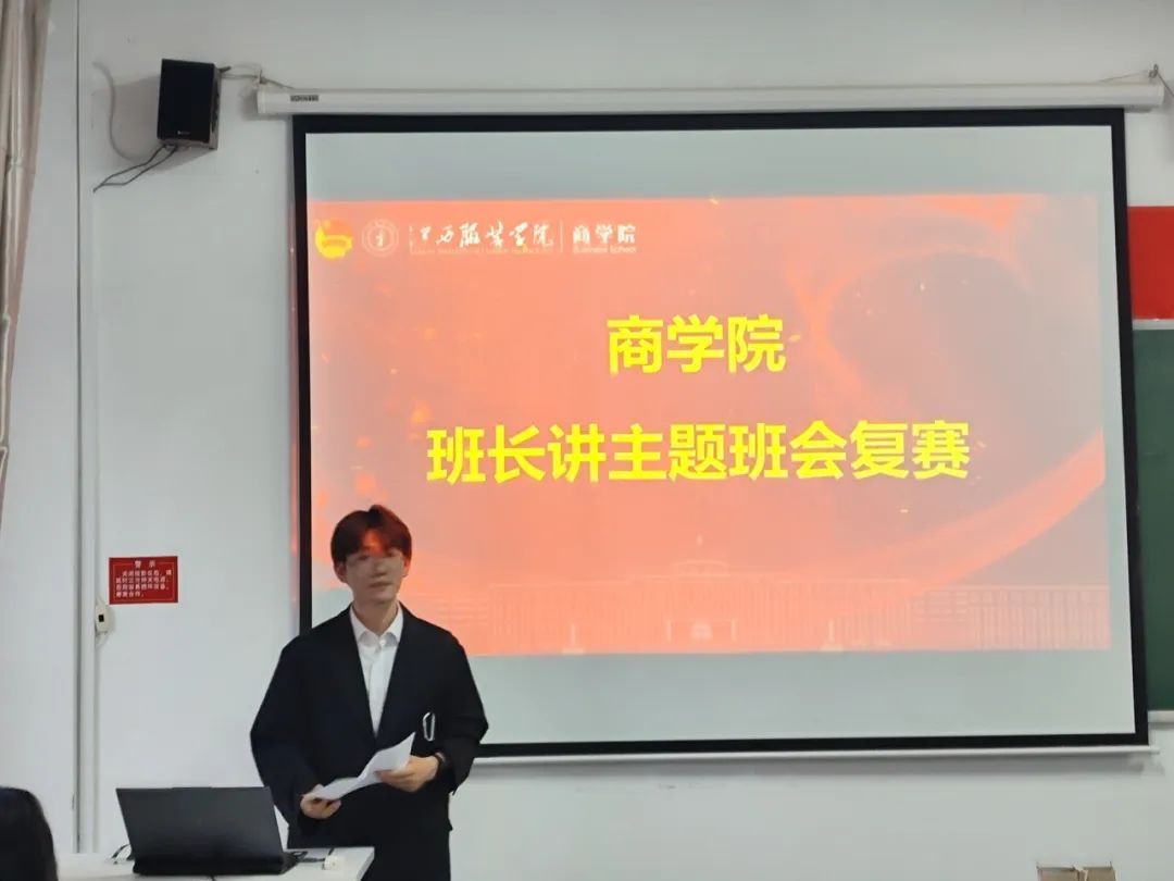 此次“班长讲主题班会”复赛的开展,为各班班长明确了各自的职责,树立了优秀的模范标杆,有利于班长以更加昂扬的激情和更加负责任的态度开展班级的建设工作,有利于商学院加强班级凝聚力和学风建设。