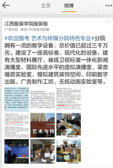 从八月中旬开始,我校《服装报》的记者们便开始为新生的到来做了准备工作,报社的微信、微博等公众线上平台相继推出了《不得不知道的大学室友相处细节》、《新生开学必备物品清单》、《新生军训必备物品清单》等一系列迎新专题报道,从交通、宿舍、快递、食堂浴室等生活方面介绍了一些校园的基本情况,受到了新生及家长的点赞好评。同时,针对新生们普遍关心的问题,校报还在微博和微信等网络平台上与新生进行了互动,给新生们答疑解惑。此外,为了方便新生们的入学报到,校报摄影记者还专门拍摄了报到流程。在新浪微博上的做的《我们的大学》不仅让新生对自己的专业和学校教学设施更加了解,更为新生提供了一个交流的平台。