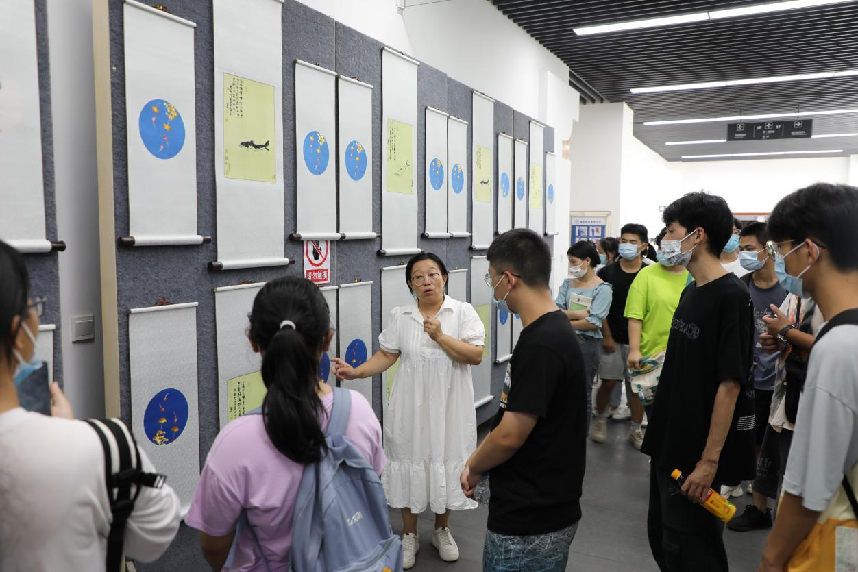 现场由戴之华老师为2021级新生介绍优秀学生作品,讲解赣绣的传统手工技法,对赣绣非物质文化遗产进行知识普及,引导学生加深对赣绣文化的了解以及对传统工艺的认识。她呼吁同学们加入赣绣班,凭借专业优势共同保护和传承赣绣非物质文化遗产,并借此带动赣绣非遗产业在新时代背景下的创新和发展。