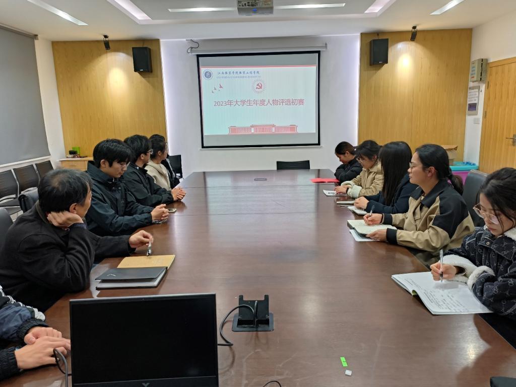 (服装工程学院讯 石袁鑫撰稿)为教育引导同学们以优秀学子为榜样,向榜样学习,营造“崇尚榜样,学习榜样,争当榜样”的浓厚氛围。11月12日晚8:00,服装工程学院在清源一栋201会议室组织了2023学年大学生年度人物答辩评审会,学院党委书记彭波,学工办副主任洪婷,辅导员卢永红、江青燕、王舒担任本次评审会的评委。