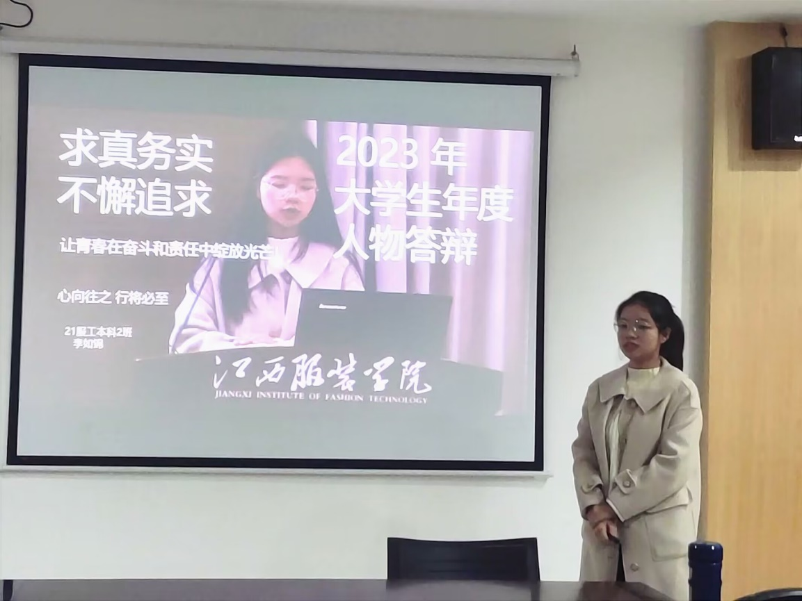 参加本次大学生年度人物评选初赛答辩的五位选手,分别是20服智本科1班刘梅连、20服智本科2班张多多、21服工本科3班涂沣琳、21纺织本科1班宋书琦和21服工本科2班李如锦。