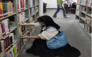 在图书馆工作人员的带领下进行工作分配,志愿者们协调配合,在不同楼层分别负责自己的工作,在工作岗位认真负责的工作。在志愿服务活动的过程中,志愿者们将图书有序整理,书籍分门别类的摆放整齐,将书柜擦拭得一尘不染,并将地面打扫干净整洁。最后,使图书馆焕然一新,为同学们的学习提供良好的舒心的环境。