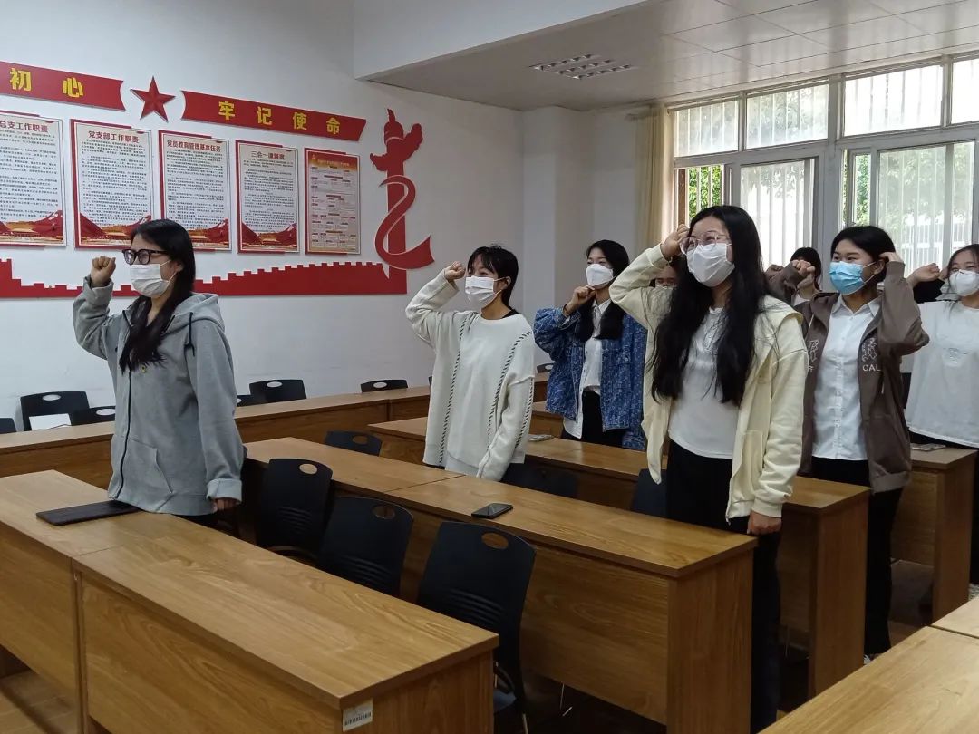 为进一步加强共青团员组织意识教育,增强共青团员的组织荣誉感,增强团组织的凝聚力和号召力。4月29日,在行政楼一楼会议厅召开了万象城平台2022年上半年新团员入团仪式,此次仪式采用“线上+线下”的形式进行。校团委书记、校团委专职团干部、各学院分团委书记、2022年新团员代表参加此次会议。服装设计学院分团委书记张敬玲作为此次会议的主持人。