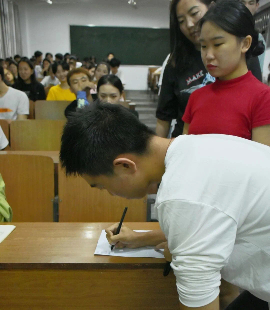 合唱团歌《光荣啊,中国共青团》后,主持人李俊辉的发言拉开了活动的帷幕,随后钟叶琴同学向大家分享了关于中国粮食安全的问题和自己的感受,期间她还提出问题,与台下的同学进行互动。钟叶琴同学的分享结束后,主持人给大家播放了袁隆平院士年轻时,在艰苦条件下研究杂交水稻和他接受央视采访的相关视频。在观看完视频后,同学们纷纷表示每一粒粮食都是来之不易的,以后会珍惜每一粒粮食。随后,商学院团委学生副书记吴家雯宣读光盘行动倡议书,提倡同学们要养成健康合理的就餐方式,以节约为荣,浪费为耻。剩饭菜打包,理性消费,摒弃“爱面子”、“讲排场”陋习,积极加入光盘行动,适量取食不随便剩饭,珍惜粮食,拒绝浪费,记心间。最后,各班级代表在倡议书上签字。
