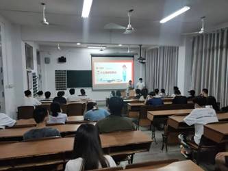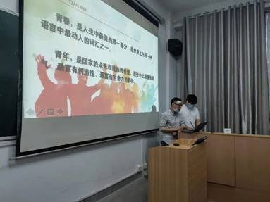 辅导员方泽老师则从“生逢其时重任在肩”“励志故事激励你我”“疫情当下众志成城”“做新时代的奋斗者”四个方面进行授课,分享了一批90后、00后青年的战疫故事,让在场的学生感受到什么是中国速度、什么是中国力量,中国特色社会主义的制度优势在这场疫情防控阻击战中得到了充分彰显、生动体现。教育引导学生向学院涌现出的先进典型学习,坚定理想信念,把握成长方向,在新学期适应新的学习要求,取得新的进步。引用习近平总书记对广大青年的寄语:“青年兴则国家兴,青年强则国家强。青年一代有理想、有本领、有担当,国家就有前途,民族就有希望”,激励广大学子勇于追梦,不负韶华,不负青春。围绕“目标、行动、信心”三个步骤,告诉同学们成功人士之所以成功,是因为他们有意识规划了自己的人生,他们的成功只不过是坚持不懈的朝着自己的目标不断努力的必然结果。希望同学们坚定理想信念,立足当下放眼长远,脚踏实地,不畏艰险,争做有理想、有信念、有担当、有本领的新时代大学生,为实现中华民族伟大复兴的中国梦贡献自己的力量!