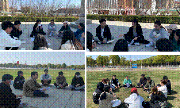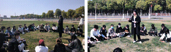 在明媚阳光下,如茵草地上,心理健康教育与咨询中心张梦春、曹昊、陈前以及二级学院辅导员郑浩雷等老师带领同学们在美丽的缀荷池旁集结,陈前老师介绍活动目的后,通过抽签将同学们随机分为三组,由各位老师带领小组成员开启生涯之旅。