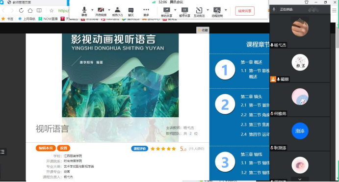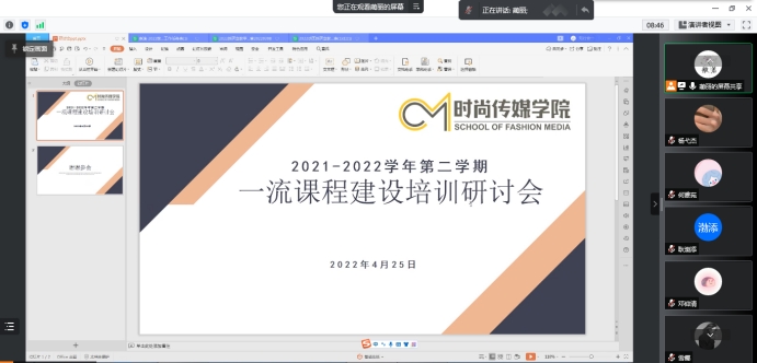 2022年4月25日中午13时许,时尚传媒学院表演与造型、播音与主持、动画及广播电视编导等四大教研室的13名骨干教师在蔺丽副院长的组织下,通过超星尔雅、腾讯会议等线上软件进行屏幕共享如火如荼的举行了2021-2022第二学期时尚传媒学院一流课程建设培训研讨会。