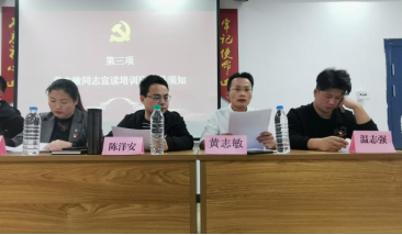开班仪式第二项艺术设计学院学生党支部组织委员喻忠贵同志宣读第三十期入党积极分子培训课程通知,主要讲解内容为培训目的、培训内容、培训要求以及培训考核四个方面。