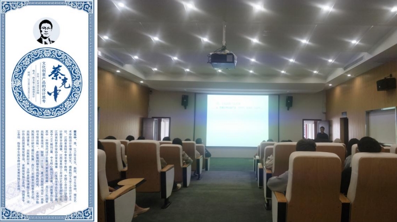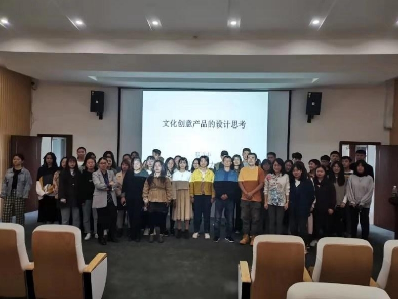 本次交流分享活动中,蔡教授主要分享了文创产品设计的概念、类型、现状、设计方向等方面的内容,从工业设计的角度分析了平面设计的设计前景,认为当下平面设计的发展应顺应时代的变化,向立体设计转变,而不应该停留在二维平面。蔡教授说,设计应该在不停地追求创新过程中使人的精神层次得到提升,毕竟设计的最终目的是人,文创产品的设计亦是如此。