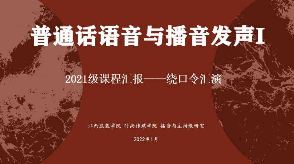 (时尚传媒学院讯)为了调动了教师和学生教与学的积极性,促进学生将所学的知识更好应用于专业实践当中,2022年1月5日,时尚传媒学院2021级播音与主持艺术专业《普通话语音与播音发声I》课程汇报——绕口令汇演在图书馆表演厅上演。本次汇报演出的指导老师有:奉梦真、耿渤添、但志鹏。