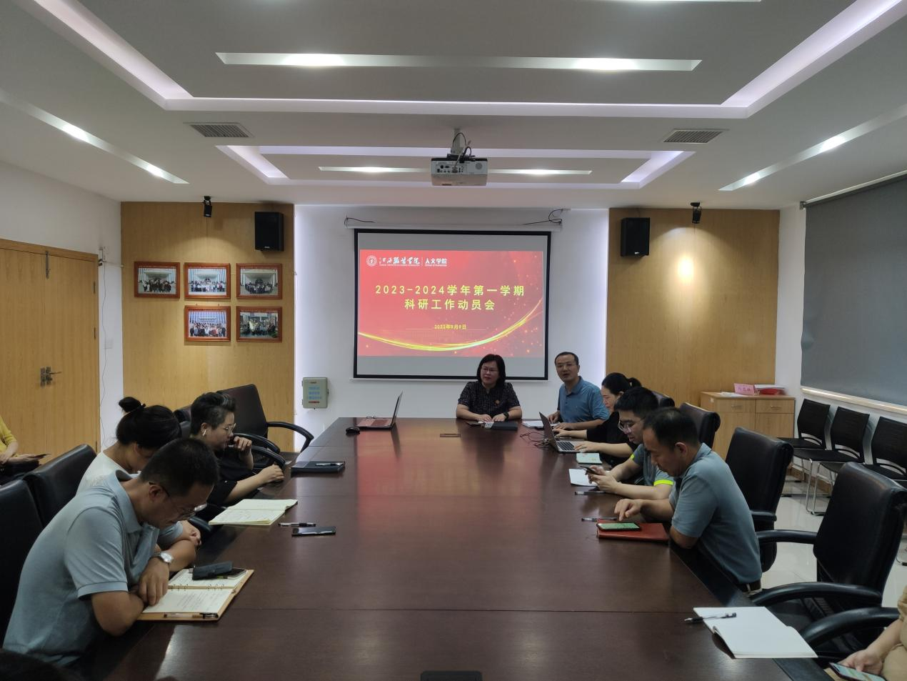 【人文学院讯肖清波撰稿】为激发学院广大教师的科研积极性、主动性,提升学院教师科研工作水平,保障申报指标任务的顺利完成。学院于2023年9月9日15:00在院会议室召开2023-2024学年第一学期科研工作会,学院领导班子、讲师及以上职称教师参加本次会议,会议由副院长陈家华主持。