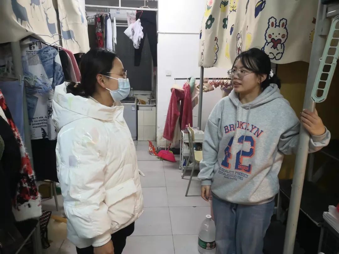 服装工程学院党总支书记彭波、学工办副主任洪婷带领全体辅导员走访了学生宿舍,看望返校学生,了解学生返校情况,做到呵护每一位学生。让同学们感到在江服也像在家一般温暖。