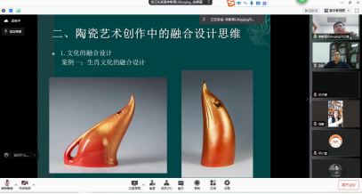 李新青教授从陶瓷艺术创作中的融合设计思维角度,进行了学术报告,围绕陶瓷作品中的跨界融合进行案例分析,重现作品创作的心路历程,展现诗与陶瓷艺术的完美融合,实现意境与心境的融合表达。他认为艺术设计学院可以充分运用万象城平台的服装教育特色,将服装和陶艺进行有机结合,期待碰撞出新的火花。