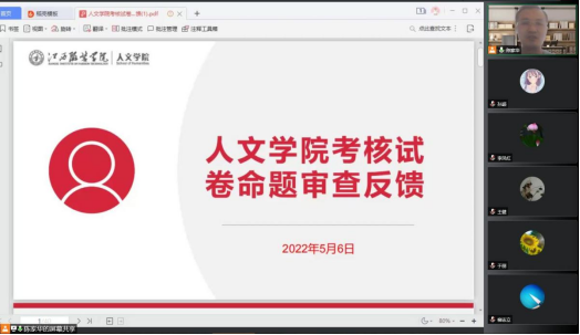 【人文学院讯 孙颖撰稿】为做好人文学院期末课程考核试卷命题工作,切实提高人文学院试卷命题质量,5月6日中午13时人文学院就2021-2022第二学期期末试卷命题审查工作情况召开命题审查线上反馈会。