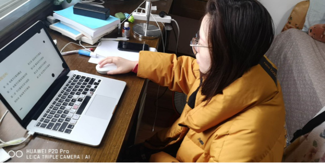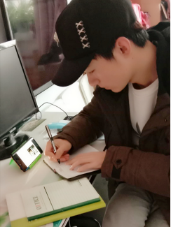 2、学生陈道滨说:停课不停学,在家里也能感受到学校的学习氛围,而且也可以认真记笔记,对这个专业感兴趣,感觉会越来越好的。